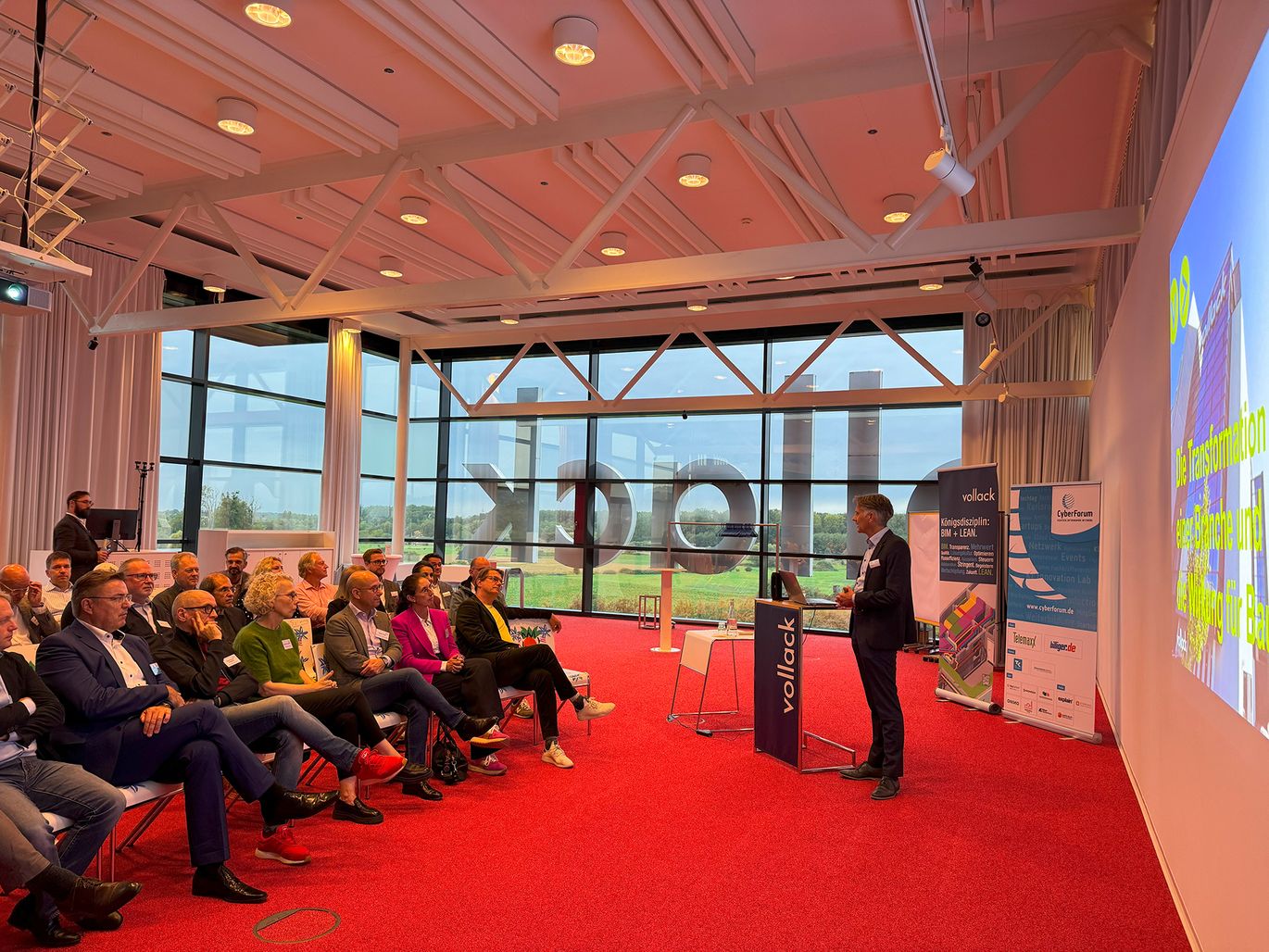 Zu einem exklusivem Networking Event für seine Mitglieder lud das CyberForum diese Woche in das Vollack FORUM 1 ein. David Hermanns, Geschäftsführer CyberForum, begrüßte gemeinsam mit den Gastgebern von Vollack rund 50 Gäste.