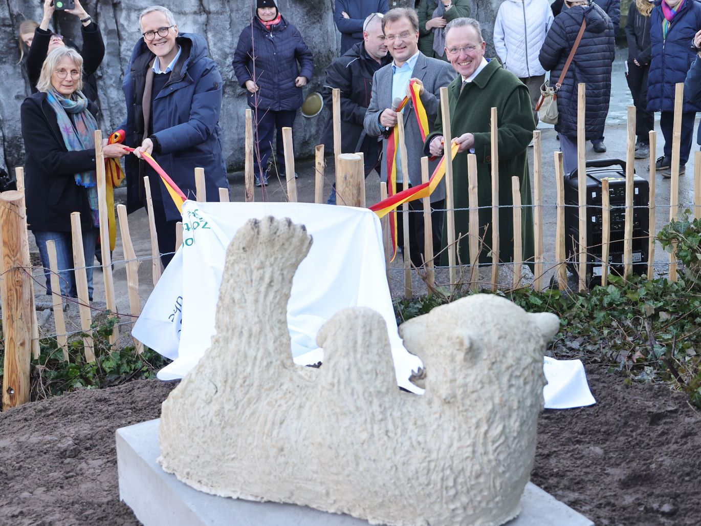 Die Eisbären im Karlsruher Zoo haben eine eigene Skulptur bekommen: „Urs“, ausgeführt von Bildhauerin Irmela Maier. Die Keramik-Figur wurde im Beisein von Kulturbürgermeister Dr. Albert Käuflein, Zoodirektor Professor Matthias Reinschmidt und Reinhard Blaurock, Geschäftsführender Gesellschafter der Vollack Gruppe, enthüllt - Baden-TV berichtete. „Mit ihrem nachhaltigen Engagement für Kunst und Artenschutz bereichert die Vollack Gruppe den Zoo um eine besondere Attraktion. Mittlerweile verwandeln mehrere Keramikskulpturen den Park in einen Ort, an dem Tierwelt, Kunst und Menschen auf besondere Weise zusammenfinden“, so Bürgermeister Käuflein anlässlich des Termins.