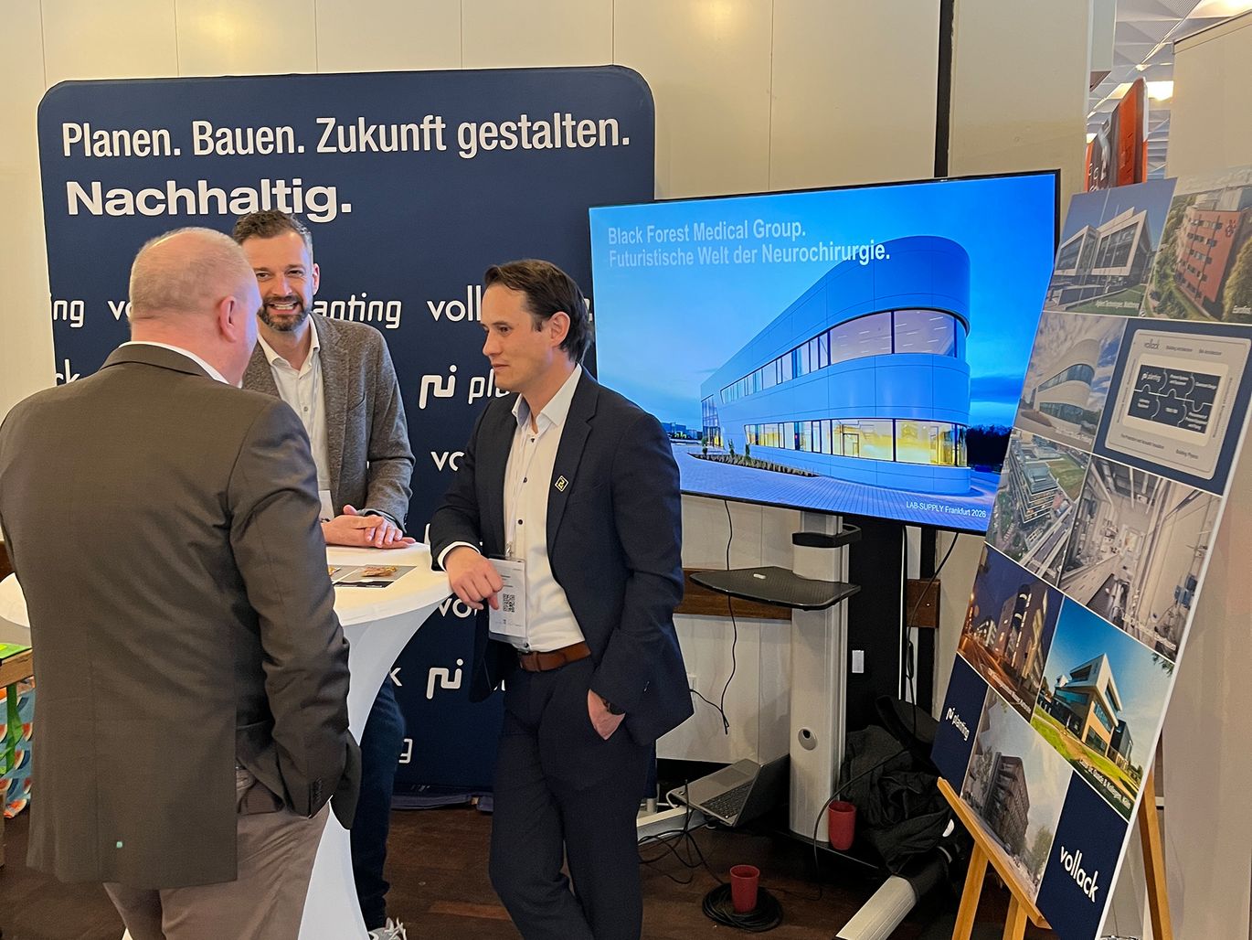 Christian Brendelberger und Dominik Fieser, beide Partner Vollack Süd, zeigten gemeinsam mit plantIng, wie sich Labore zukunftsfähig, intelligent und nachhaltig planen und bauen lassen. Christian Brendelberger ist überzeugt: „Die LAB-SUPPLY bietet eine hervorragende Plattform, um mit Entscheidern im Bereich Labor zu sprechen. Die Zukunft des Laborbaus beschäftigt Unternehmen, denn sie benötigen die optimalen räumlichen Voraussetzungen für ihre Innovationsfreude.“