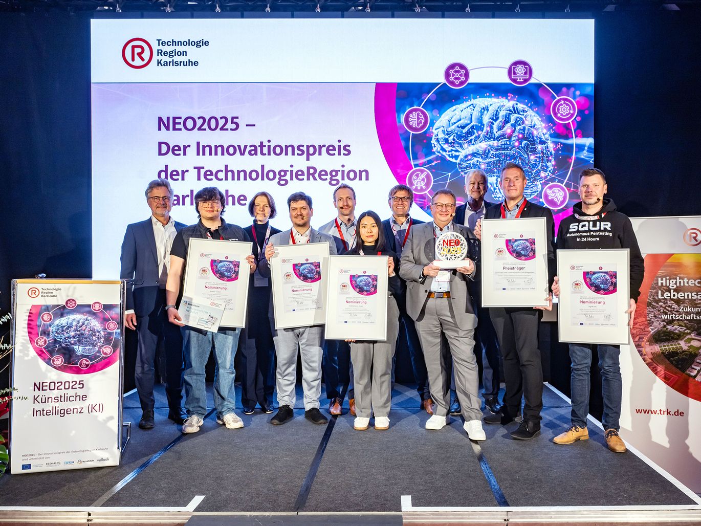 Klaus Teizer, Geschäftsführer Vollack Gruppe, begrüßte die Gäste und würdigte in seinem Grußwort vor allem den Innovationsgeist der Teilnehmenden. Dr. Frank Mentrup, Vorsitzender des Aufsichtsrats der TechnologieRegion Karlsruhe und Oberbürgermeister der Stadt Karlsruhe, betonte in seinem Grußwort: „Mit dem Innovationspreis NEO möchten wir gezielt Innovationen fördern, die den Einsatz von KI in Unternehmen und Verwaltungen vorantreiben und so unsere Position im internationalen Wettbewerb stärken.“
