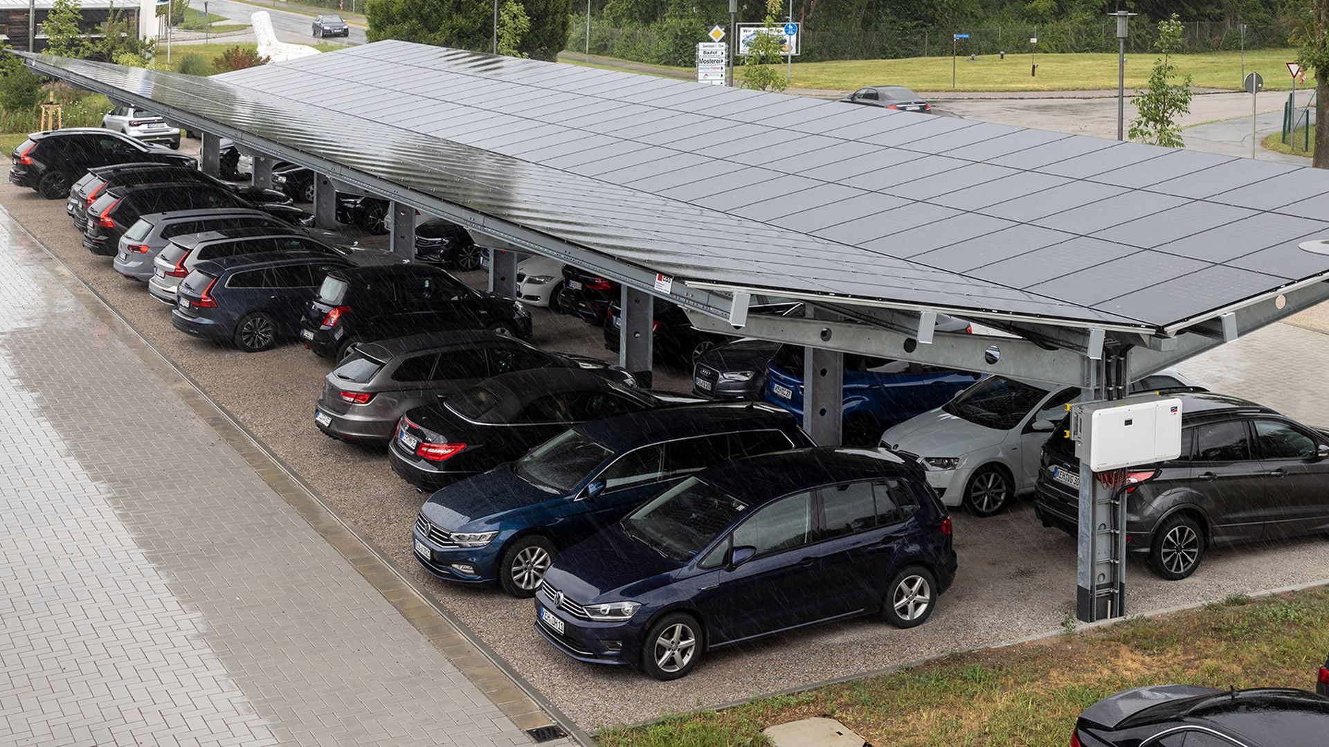 Further PV systems on the roof and the carport complete the intelligent energy concept that Vollack planned for the building owners: with 710 additional PV modules on an area of around 1,400 square meters and an additional output of more than 300 kilowatt peak per hour, more than 87 percent of the energy requirements will be covered in future. In addition, ecologically sound building services with heat pump technology and heat recovery contribute to the sustainability of the building.