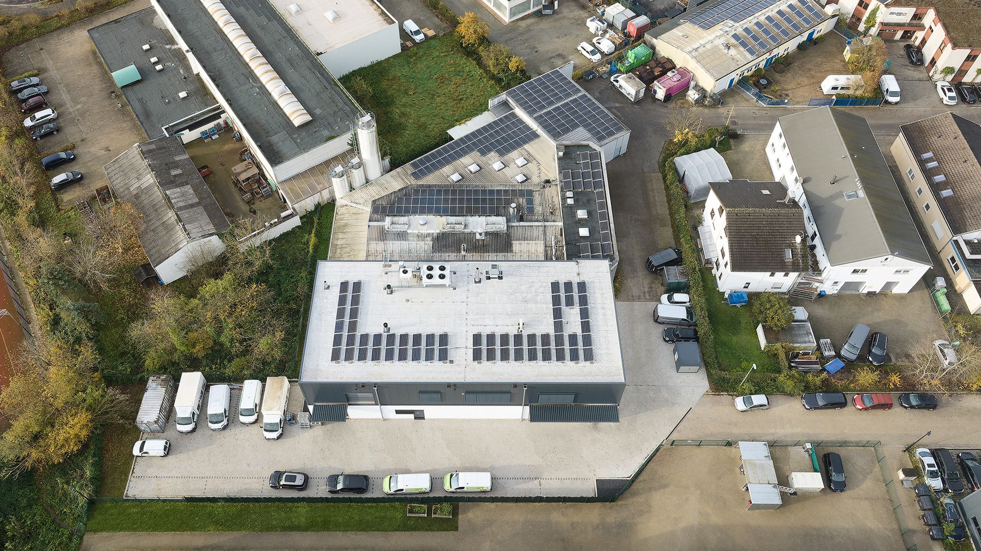 The building meets the KfW Energy Standard 55, meaning it requires only 55 percent of the energy used by a conventional new building. Part of the building’s technical infrastructure is a heat recovery system that ensures production heat is not lost but can be utilized as efficiently as possible. This reduces energy costs and CO2 emissions. A photovoltaic system on the roof covers about 15 percent of the electricity demand.