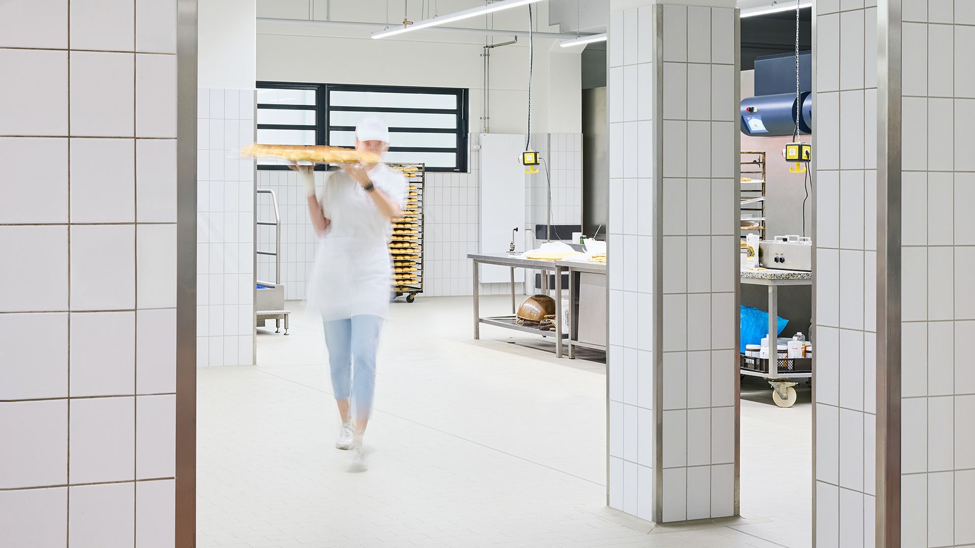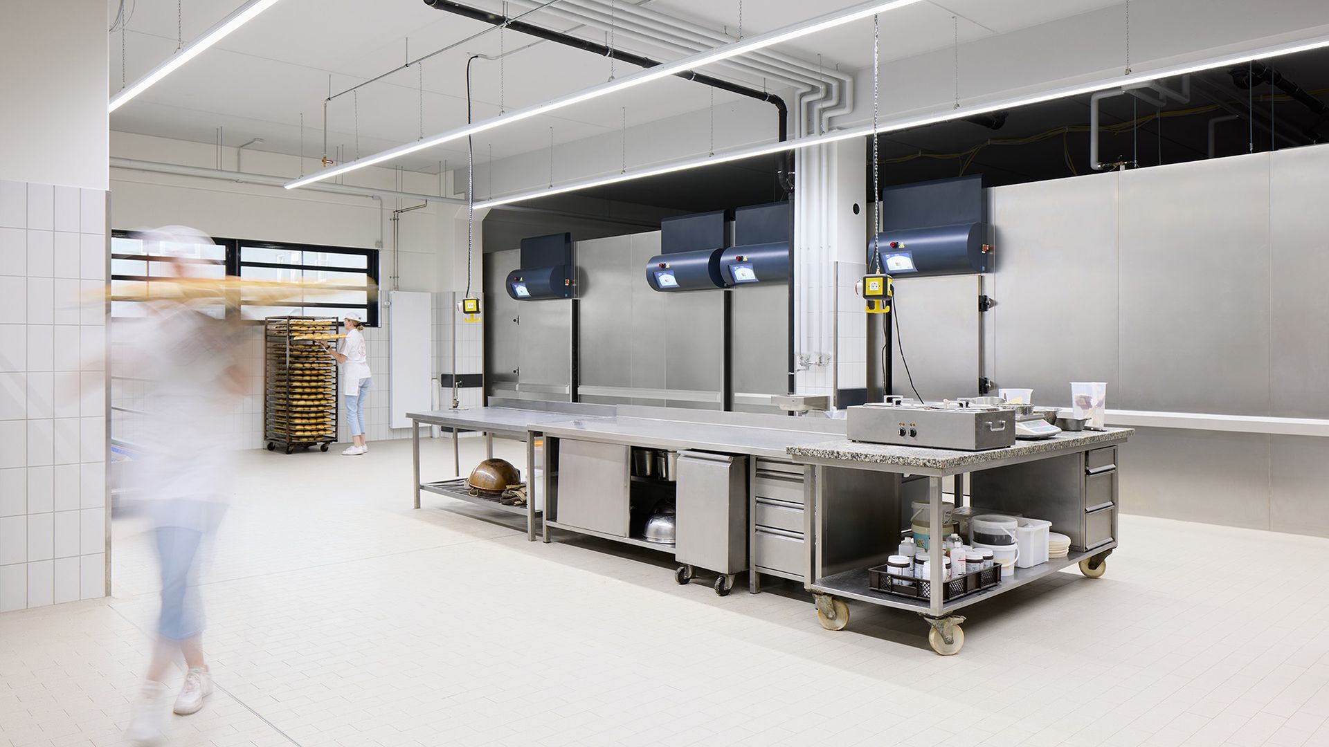 For the family-owned business Bäckerei Pass, known in the Dusseldorf area since 1962 for its top-quality artisanal baked goods, Vollack constructed a two-story new building with approximately 1,100 square meters of gross floor area, which is directly adjacent to the existing structure. One challenge was the limited available space, which was utilized optimally. The ground floor, designed as a solid-construction building, provides space for deliveries, bread roll production, a pastry shop, and cold storage rooms. On the upper floor, which was constructed using a classic, lightweight hall structure - thereby saving resources and energy - office, break, and training rooms were created.