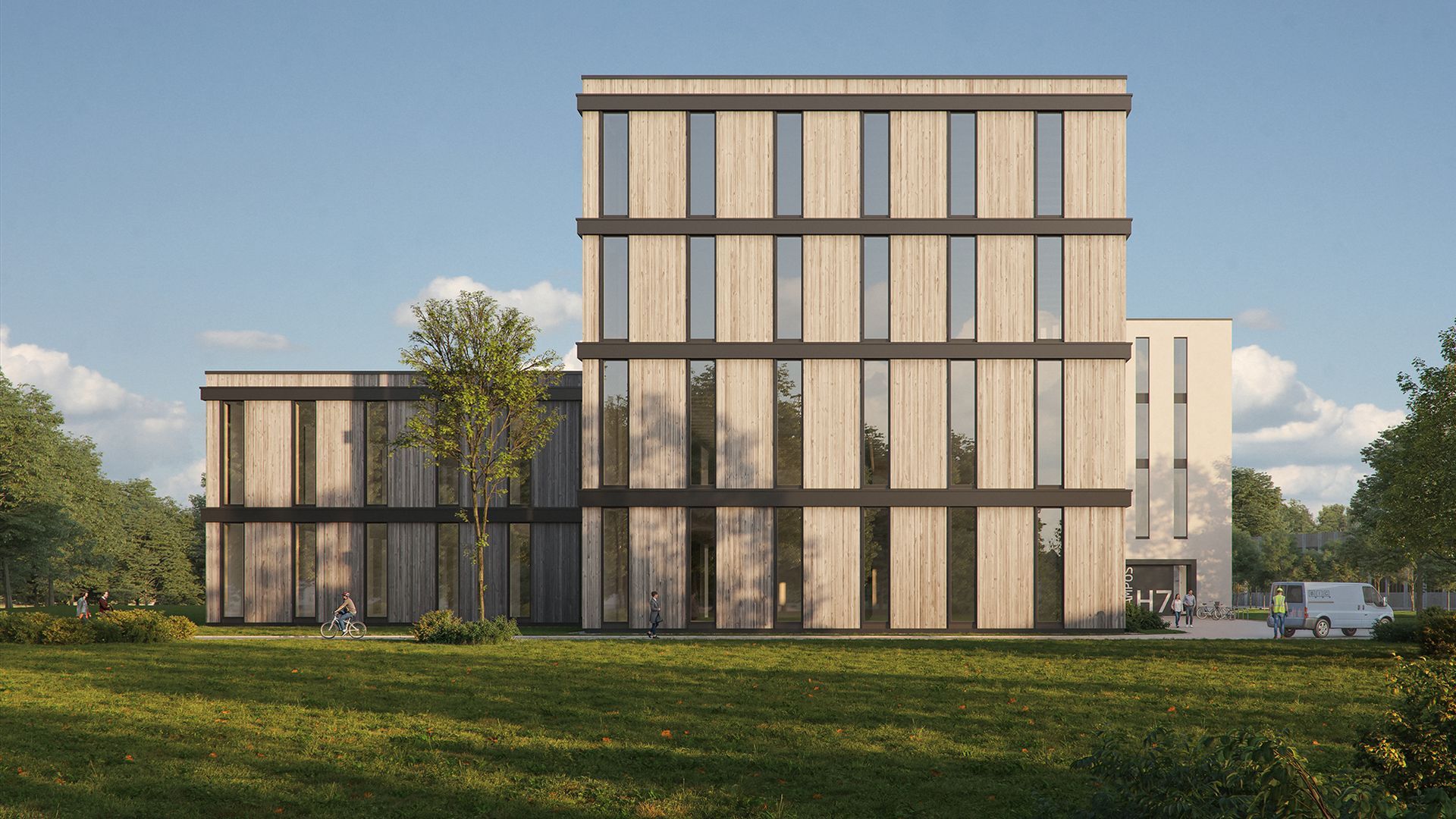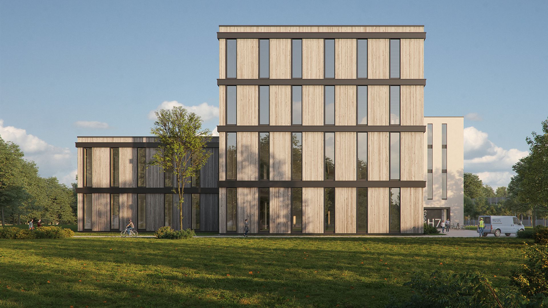 Vollack is planning and constructing the new building using sustainable hybrid timber construction methods, which permanently binds CO2 in the building structure thanks to the high proportion of wood used. In combination with building technology such as air heat pumps, component activation, and photovoltaics on the roof, this creates a pioneering building with sustainable and tailor-made working environments. In the future, this will be the headquarters of Scansonic, the largest B.I.G. company and a market leader in laser technologies, with more space for development and exchange as well as the production of its laser technology solutions.