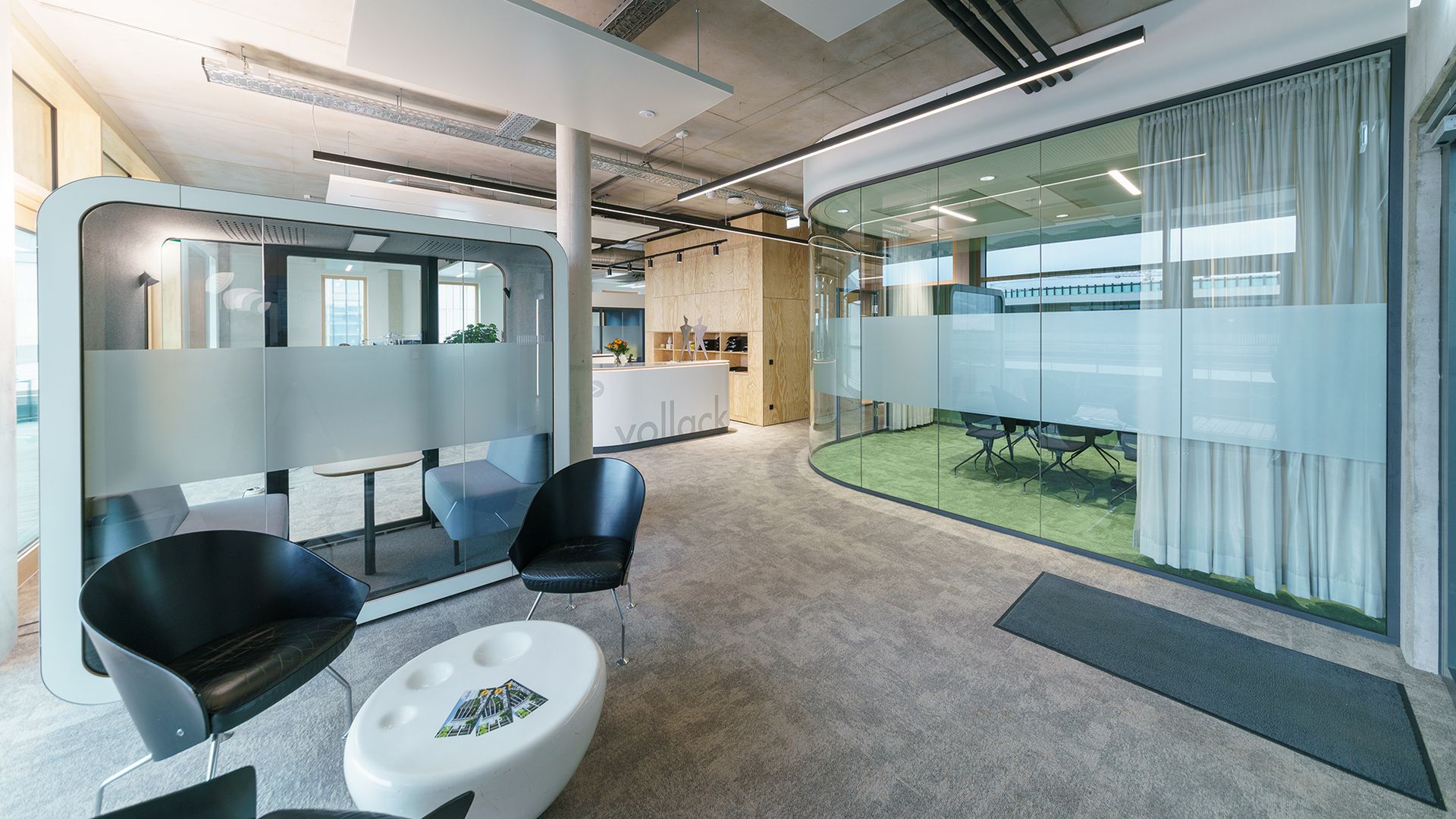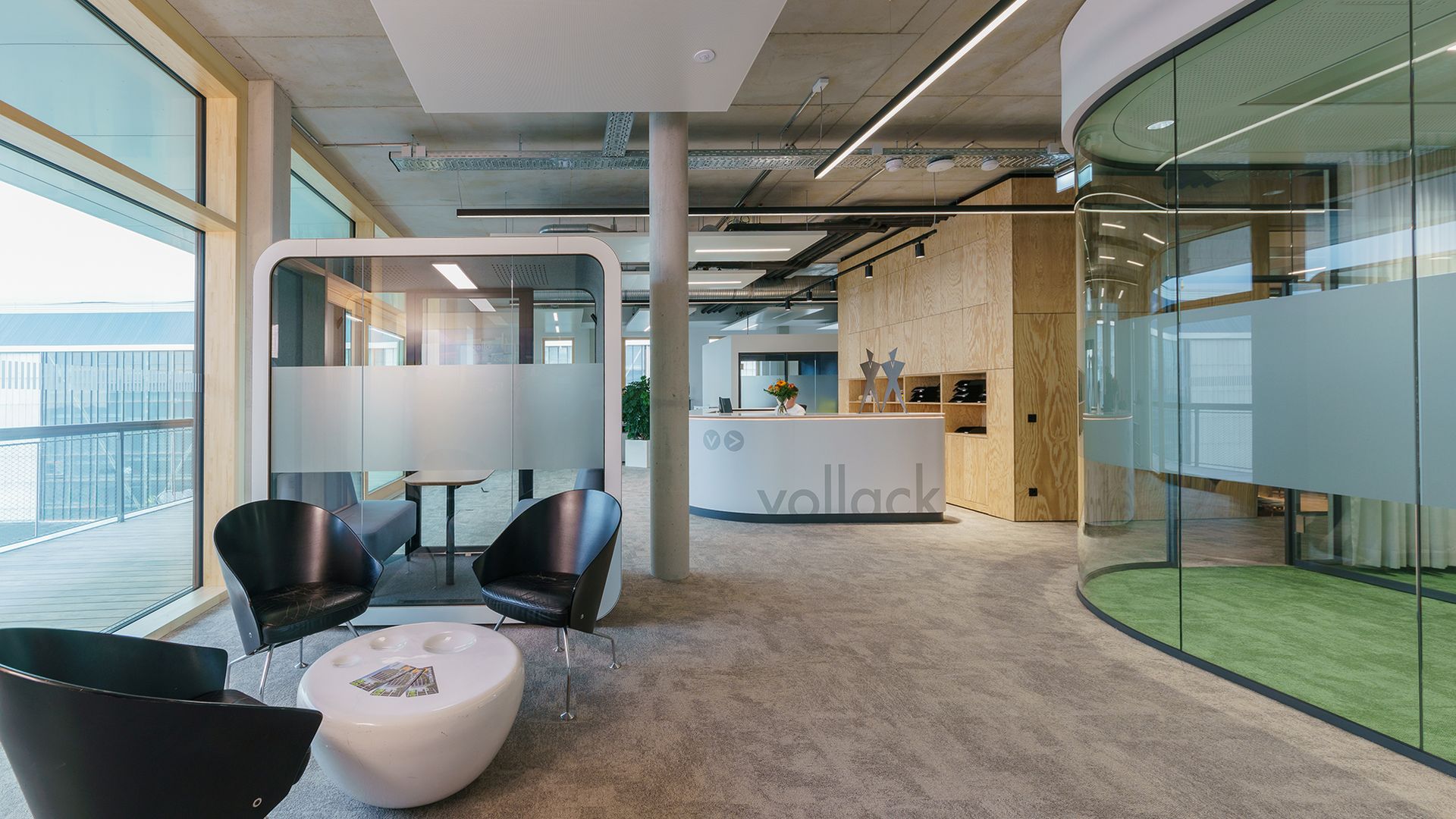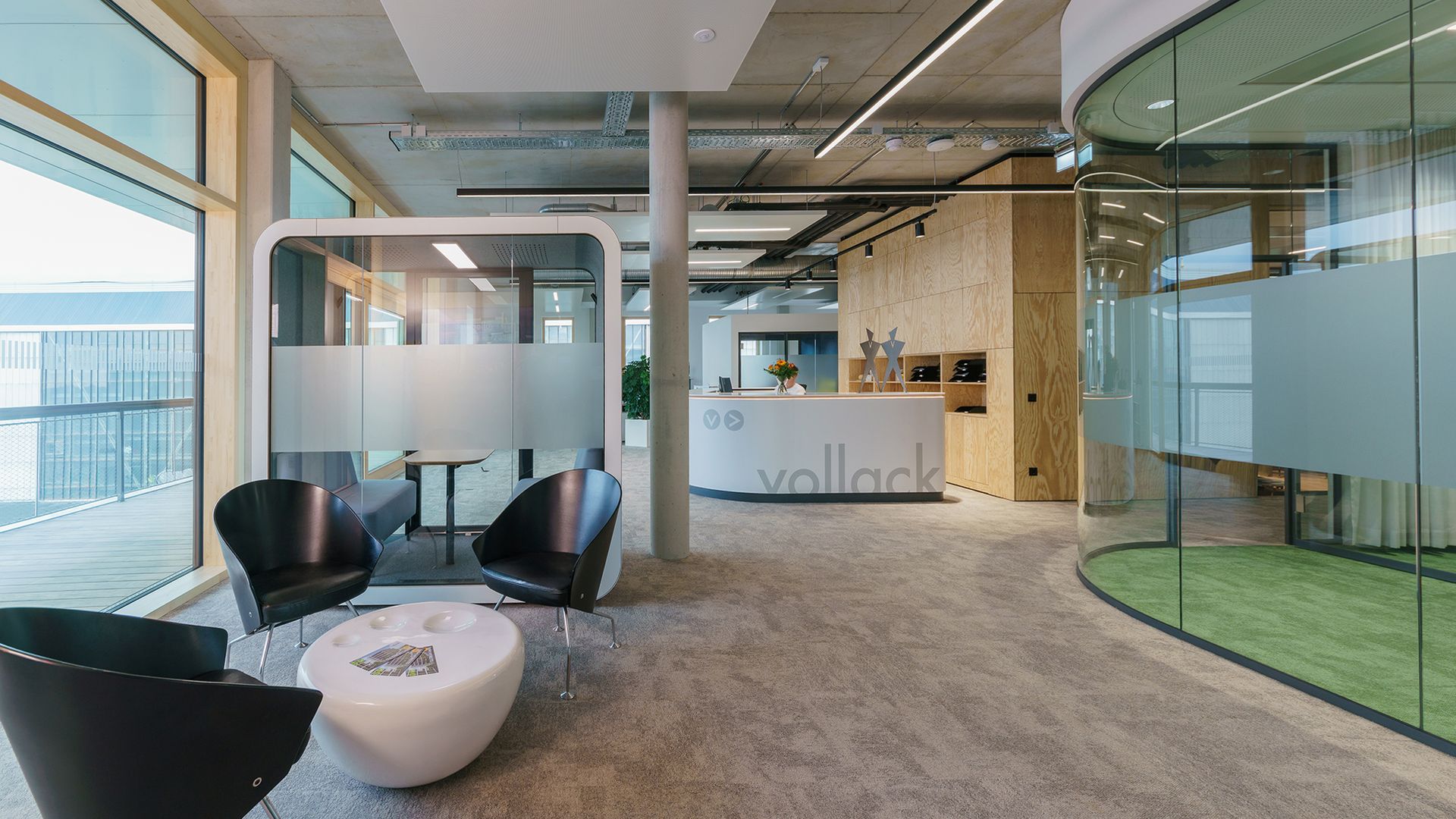 The building complex, designed as an energy-efficient building, is supplied with renewable energy from geothermal sources, heat pumps, and photovoltaics. The roof is greened and used as a rainwater storage tank. When selecting materials, Vollack focuses on resource- and time-saving implementation, for example by using prefabricated wooden facade constructions and, as a result, saving on concrete. An intelligent building automation system completes the energy concept. Thanks to the innovative planning approach with its exemplary balance between cost and climate impact, optimal conditions have been created for using the reference project for research work.