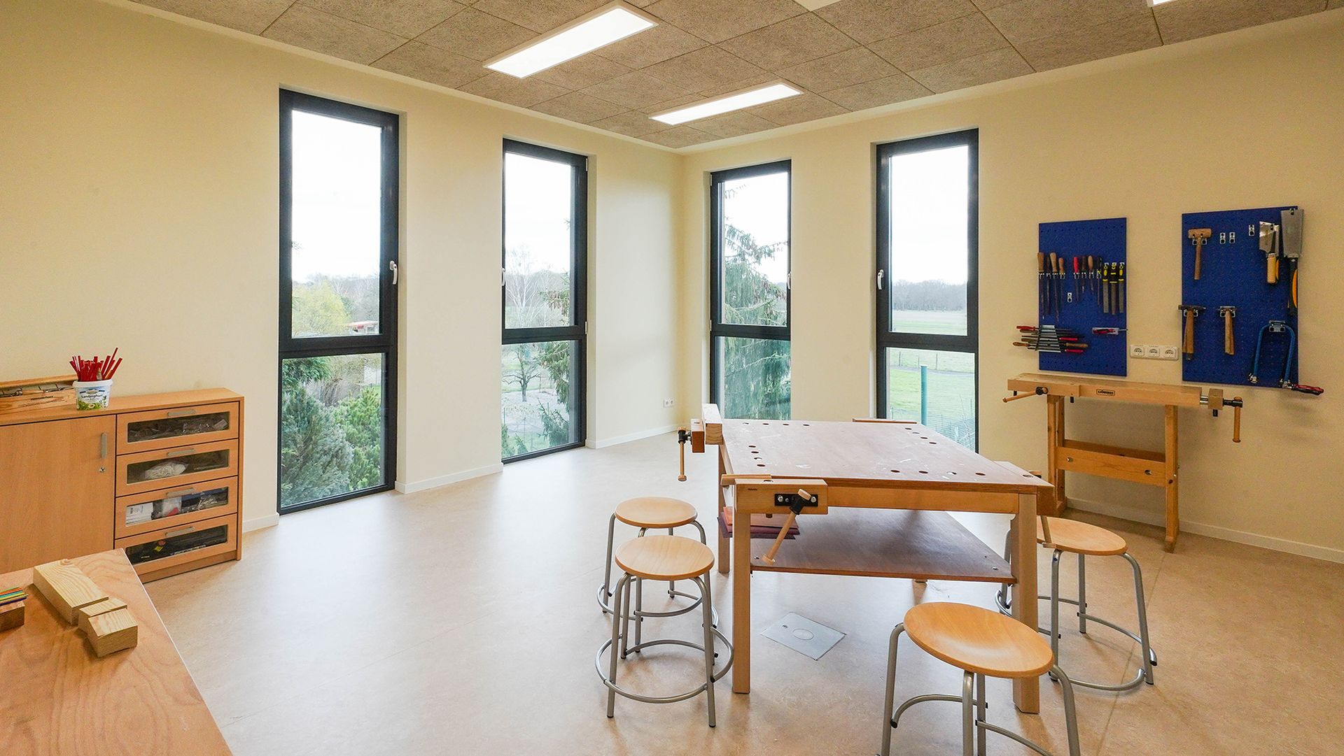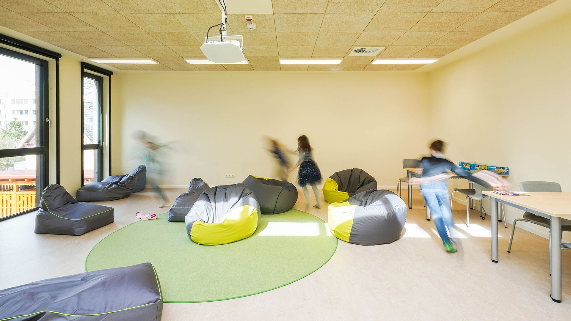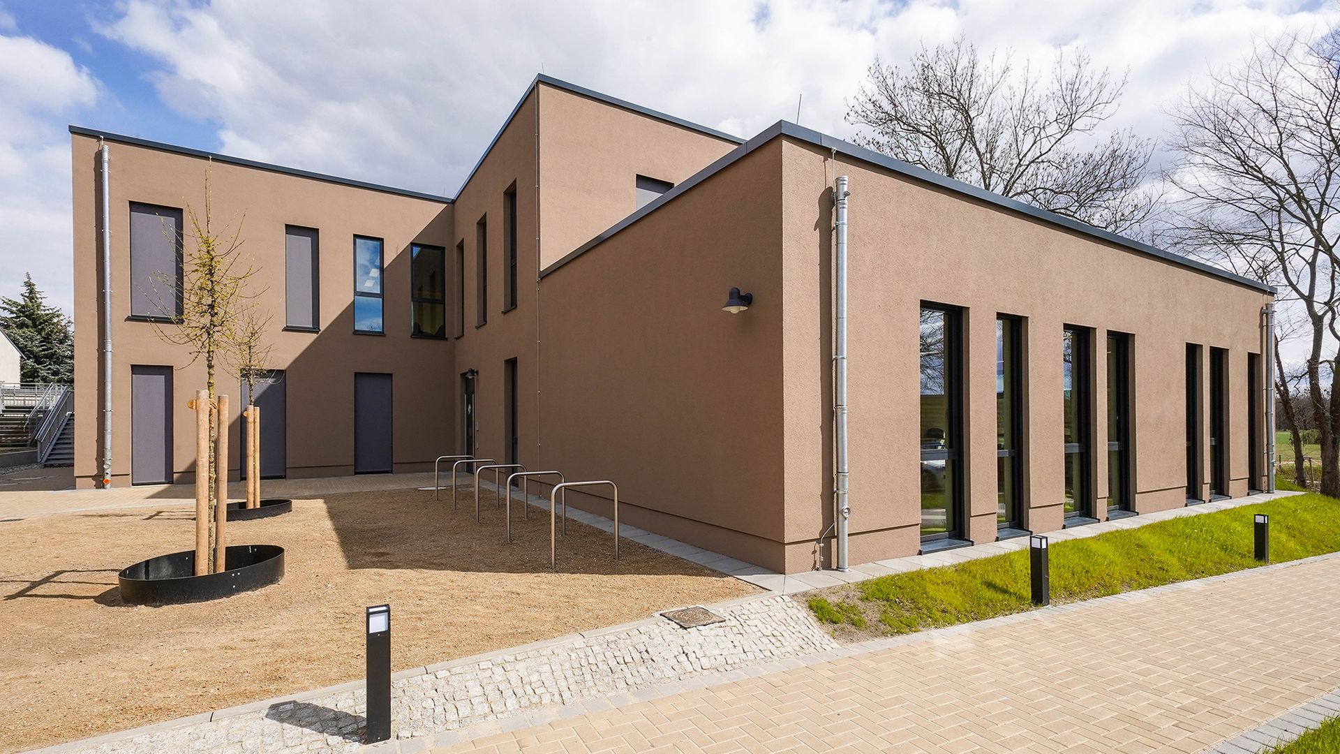 Children play and learn across two floors in a modern, light-filled environment. In addition to a fully equipped kitchen for fresh meals every day, the daycare center also offers rooms for sports, media education, music, and even a science lab for experiments and discoveries. In the garden, children can harvest fruits and vegetables, helping to shape healthy meals in the children’s kitchen.