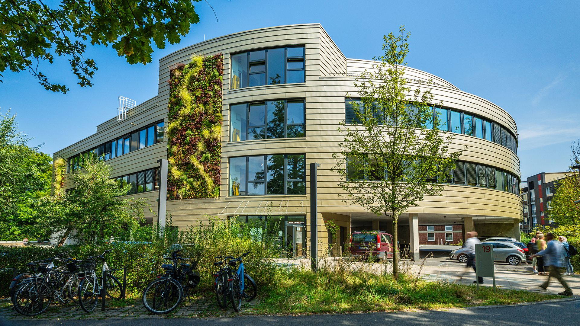 One highlight of the new building is its green façade. Not only does it protect and insulate the building, it also improves the microclimate and contributes to biodiversity. Large sections of the roof have also been greened. A roof terrace is available for staff to enjoy breaks outdoors.