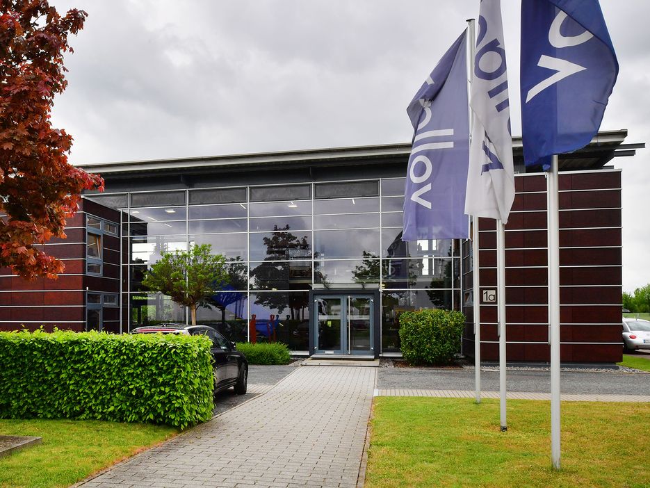 The offices provide areas to use for research and development, design, customer service and sales. The inner courtyard features a staff canteen and terrace. Mechanical production and paintwork are located in the hall. Offices with a gallery are located adjacent to this in close proximity to production. An assembly hall and warehouse are also being erected. The assembly halls, which are fitted with cranes throughout, will span 15,000 square meters in the future. They are equipped with ceiling mounted radiant panels for district heating and a ventilation system.