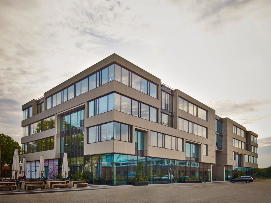 Zukunftsweisende Arbeitswelten mit einem Maximum an räumlicher Flexibilität, rund 90 % niedrigeren Heizkosten und einer hohen Raumluftqualität in einem kreativen Quartier mit historischer Bedeutung – das alles vereint das Gebäude im Kreativpark Karlsruhe als größtes zertifiziertes gewerbliches Passivhaus Baden-Württembergs.