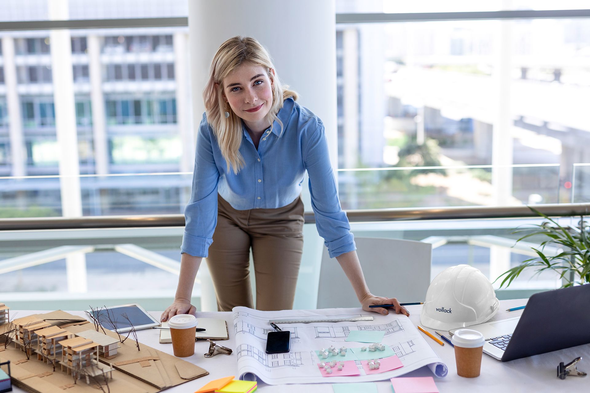 Voller Perspektiven. Die Vollack Welt ist inspirierend. Wir arbeiten interdisziplinär in offenen Teambüros und mit zukunftsweisender Technik. Die IT ist hochmodern und viele Prozesse digital. Sie ermöglichen flexibles Arbeiten im Büro, auf der Baustelle, mobil oder im Homeoffice.