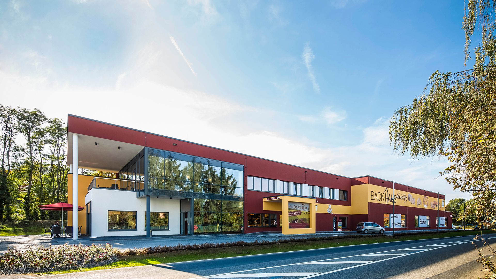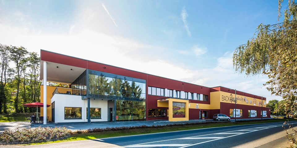 Drive-In-Schalter, Backhaus-Café mit Terrasse, gläserne Backstube, Seminarraum – das Backhaus Heislitz in Kriftel bietet auf einem Grundstück von mehr als 5.500 Quadratmetern eine komplette Erlebniswelt rund ums Backen.