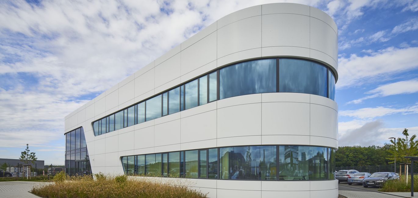 Die interdisziplinären Arbeitsinseln im Bürobereich, die nach Lean-Methoden ausgerichtete Produktionsfläche und das futuristische Gebäudedesign spiegeln den Spirit des Unternehmens perfekt wider. Im Außenbereich stehen Recreation Area, Fußball- und Streetball-Platz für den Ausklang des Tages zur Verfügung.