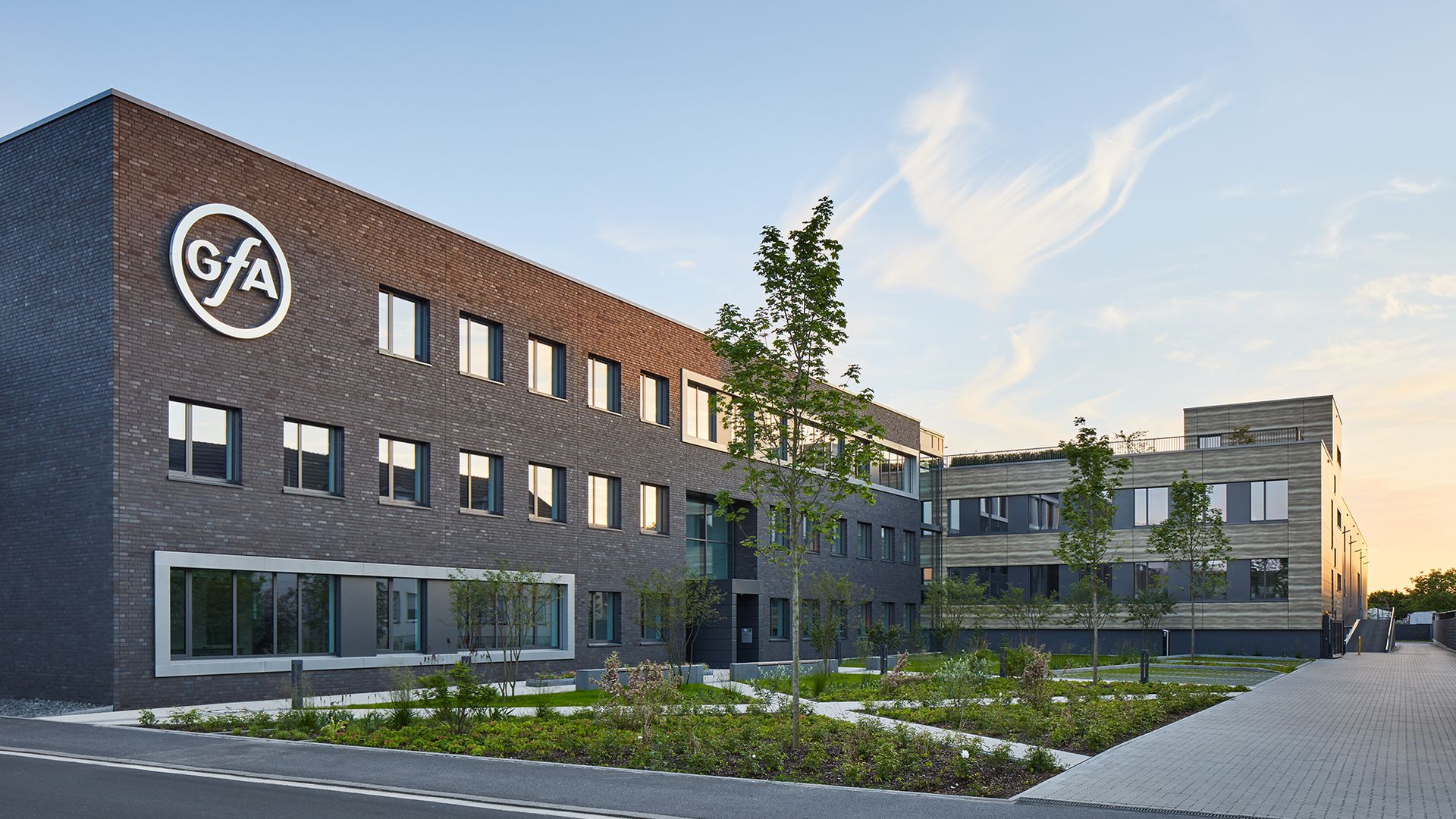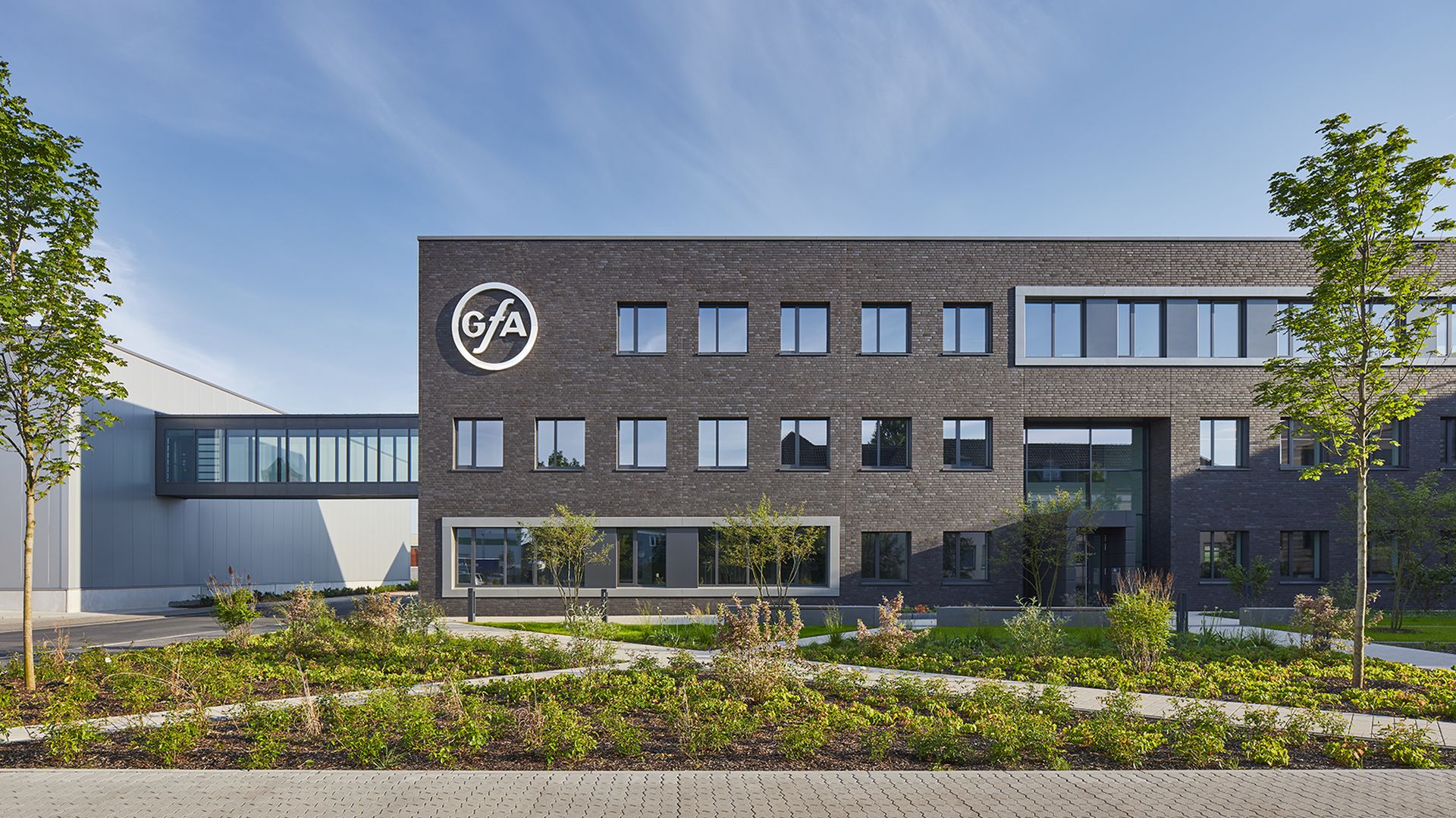 Die neue Arbeitswelt von GfA in Düsseldorf umfasst ein Bürogebäude für Forschung und Entwicklung sowie eine Montagehalle. Auf 5.400 Quadratmetern Fläche hat der Experte für Industrietore die Bereiche Vertrieb, Produktmanagement, Konstruktion, Service, Musterbau sowie Verwaltung vorgesehen.