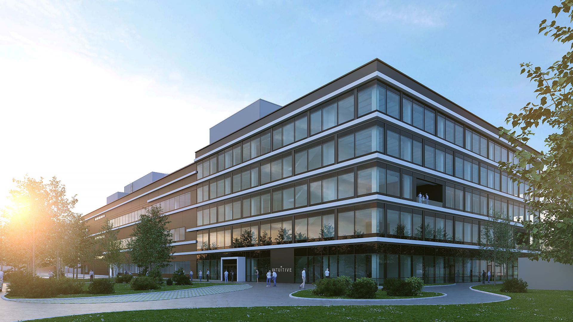 Für Intuitive Surgical, weltweit führendes Unternehmen in der minimalinvasiven Medizin und Pionier der Roboterchirurgie, entsteht der neue Firmensitz mit einer Bruttogeschossfläche von rund 28.700 Quadratmetern. Er wird nach Förderrichtlinie BEG40NH sowie im DGNB-Gold-Standard errichtet und bietet künftig Platz für rund 600 Mitarbeitende. Das Ensemble wird ein Verwaltungsgebäude mit Kundenerlebniszentrum und Schulungsräumen umfassen, ein Produktionsgebäude , ein Parkhaus sowie eine Energiezentrale, die alle Gebäude versorgt.