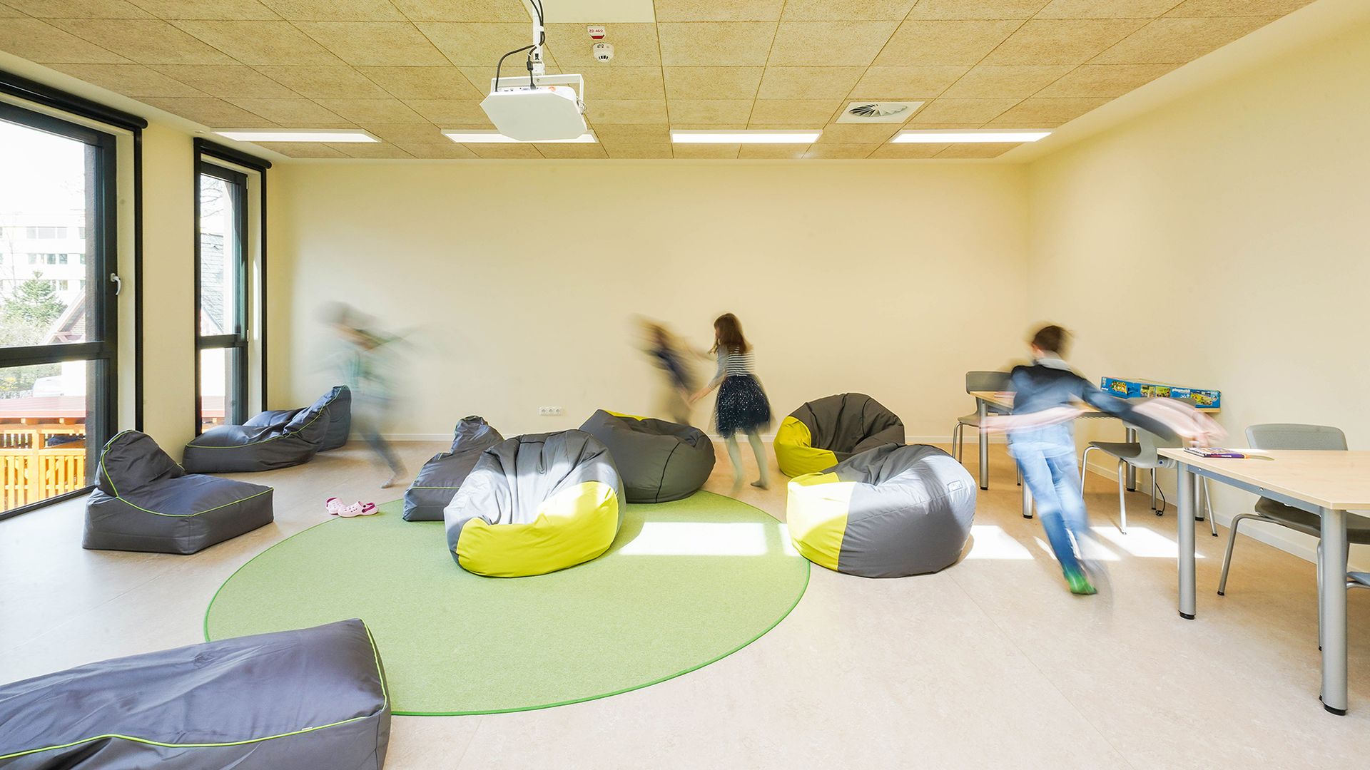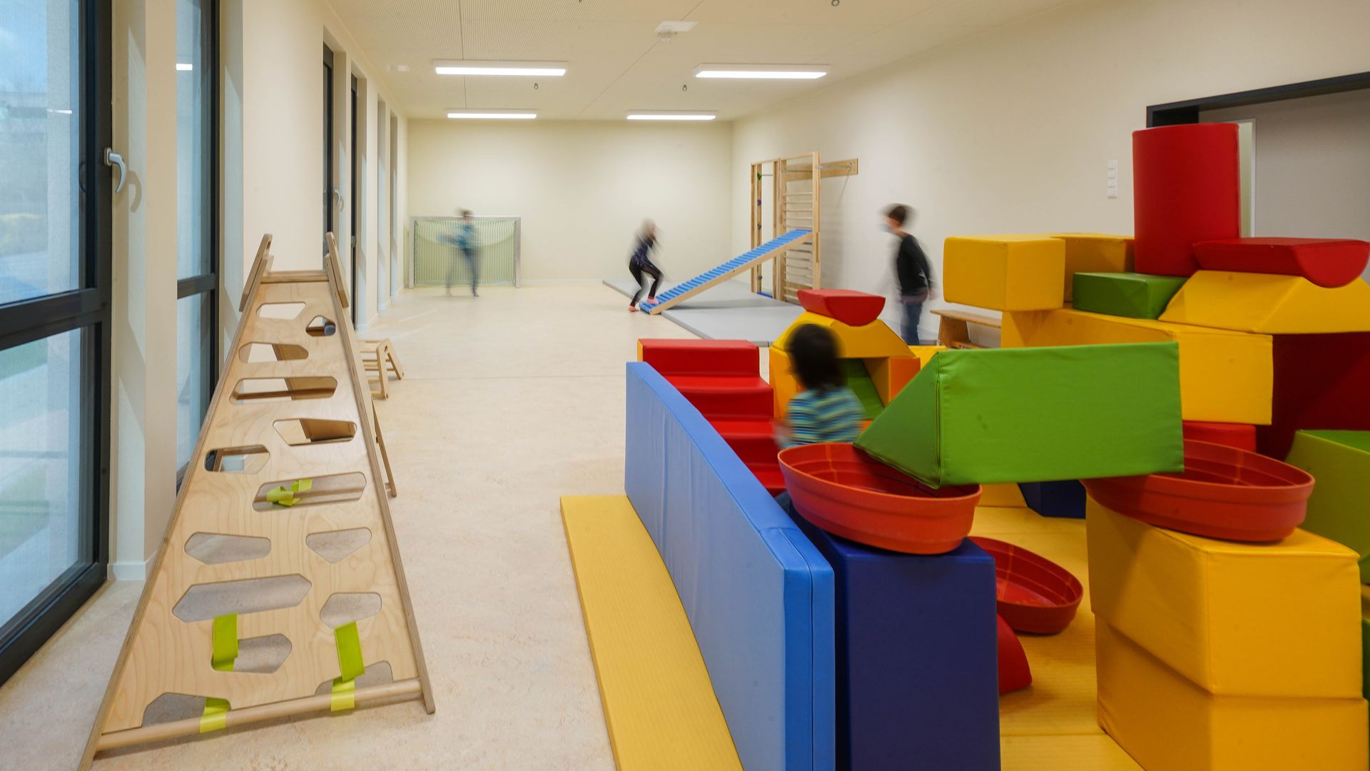 Auf zwei Etagen wird in moderner und lichtdurchfluteter Atmosphäre gespielt und gelernt. Neben einer Vollküche für täglich frische Mahlzeiten bietet die Kita auch Räume für Sport, Medienpädagogik, Musik und sogar einen Forscherraum für naturwissenschaftliche Experimente und Entdeckungen. Im Garten kann Obst und Gemüse geerntet und so die gesunde Ernährung in der Kinderküche mitgestalten werden.