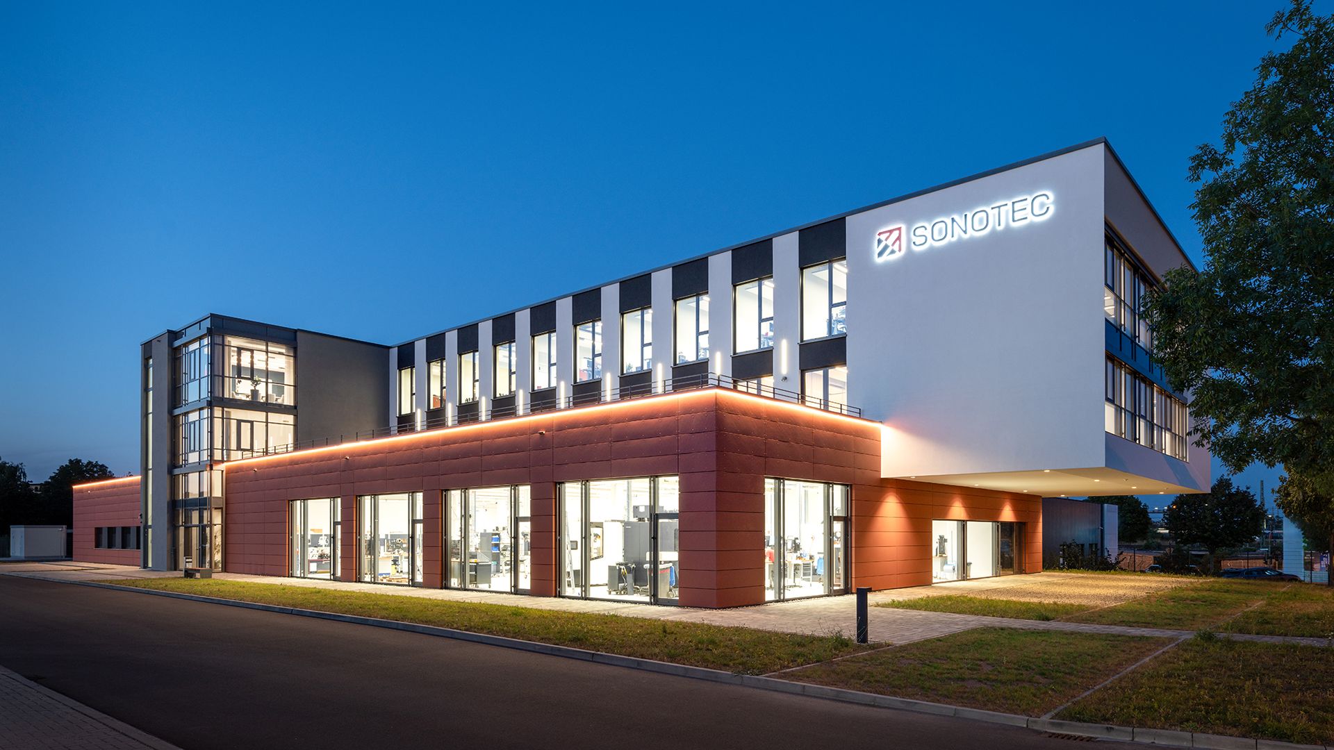 Für SONOTEC, einem führenden Produkt- und Lösungsspezialisten für Ultraschallmesstechnik, realisierte Vollack eine maßgeschneiderte Standorterweiterung. Der Neubau ist ein wichtiges Signal für die Zukunftsorientierung des erfolgreichen mittelständischen Unternehmens in Halle (Saale). Auf drei Etagen bieten Produktions- und Büroflächen mit einer Bruttogeschossfläche von rund 4.300 Quadratmetern den 130 Mitarbeitenden optimale Arbeitsbedingungen.