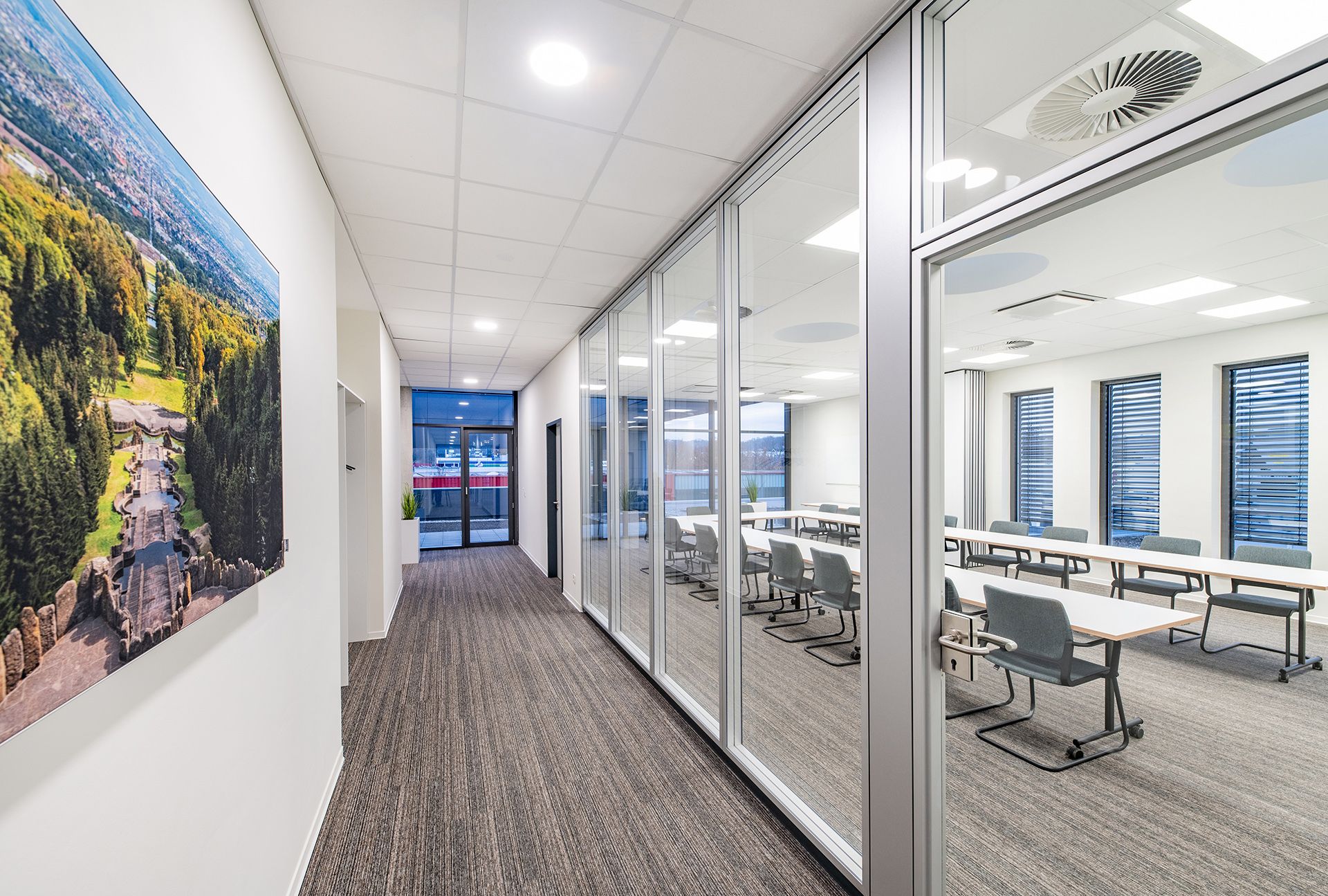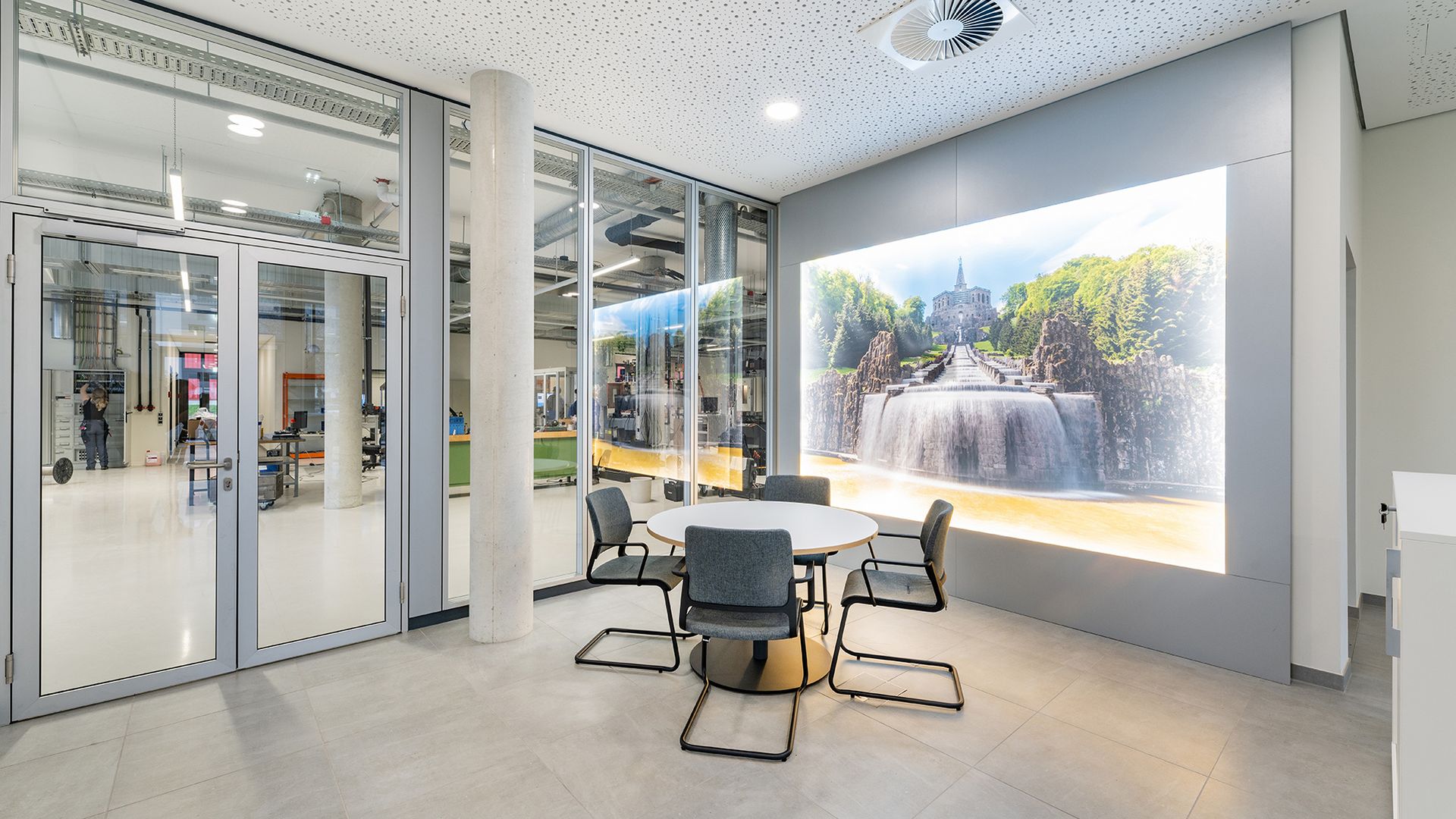 Ein hoher Automatisierungsgrad und hochwertige Prozesstechnik prägen den Neubau. Großflächige Glasflächen sorgen für viel Licht und Transparenz sowie Ein- und Ausblicke. Die klare und effiziente Funktionsstruktur sowie der technoide Charakter des Gebäudes unterstreichen die Wirkung des Standortes Kassel als Innovationsförderer und Know-how-Träger.