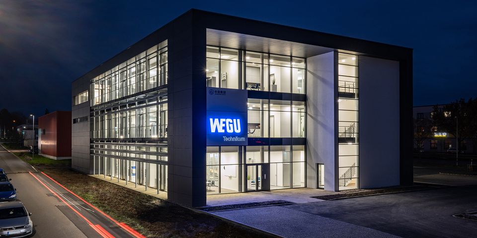 In Kassel plante und realisierte Vollack für WEGU ein neues Technikum mit 3.000 Quadratmetern Nutzfläche. Klar definiert gliedert sich das Bauwerk in zwei Abschnitte. Ein dreigeschossiger Gebäudeteil nimmt die Funktionsbereiche Prüfen, Qualitätsmanagement, Projektleitung und Entwicklung auf und schafft den Bezug zum gegenüberliegenden Gebäudebestand.