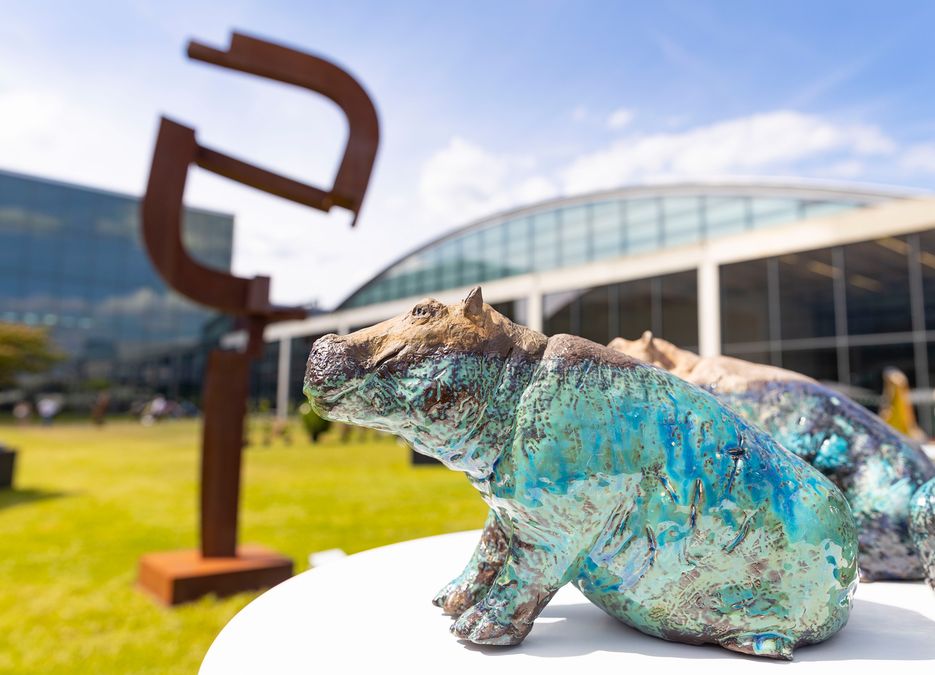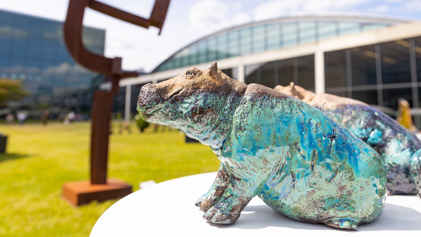 Nachdem das Projekt 2021 aufgrund der Pandemie pausieren musste, wurde 2022 Flusspferd „Blue“ umgesetzt. Künstlerin Irmela Maier entwarf eine Keramik in irisierendem Türkisblau. Das Flusspferd erhebt sich scheinbar aus den Fluten. Künstlerin Irmela Maier zeigte das Tier besonders naturalistisch und spielte zugleich mit dem Motiv des ägyptischen Nilpferds, das in türkisfarbener Glasur als Grabbeigabe Kraft und Stärke symbolisierte. Wie sich die Zeiten ändern: Heute benötigen die Tiere unseren Schutz.